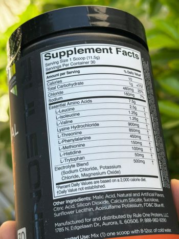 - R1 Essential Amino 9 Energy 7.5 گرم از 9 EAA را با برگ چای برای انرژی و الکترولیت های اضافه شده برای هیدراتاسیون ارائه می دهد