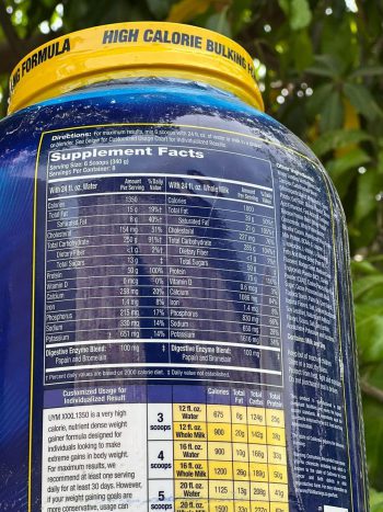 - این محصول حاوی 50 گرم پروتئین با جذب سریع و آهسته و 250 گرم کربوهیدرات است تا به راحتی 1250 کالری دریافت کند