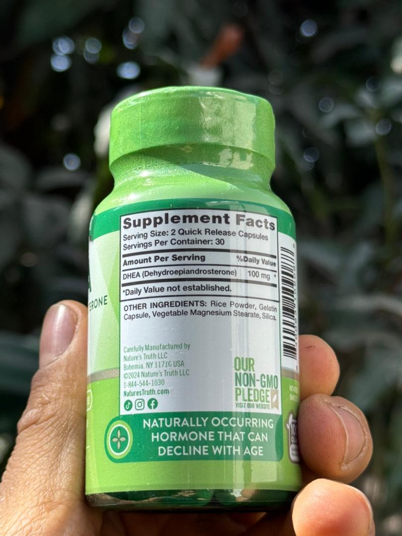 هر وعده حاوی ۱۰۰ میلیگرم دهیدرواپیآندروسترون (DHEA)، یک هورمون طبیعی، است. فرم مناسب: دو کپسول با رهایش سریع در روز، منبع باکیفیتی از DHEA را فراهم میکنند. صادقانه و شفاف: Nature’s Truth متعهد به ارائه بهترین محصولات سلامتی با کیفیت است. متخصصانی که میتوانید به آنها اعتماد کنید: با پشتیبانی سه نسل از نوآوران ویتامین برای کیفیتی بینظیر. عاری از: گلوتن، گندم، مخمر، شیر، لاکتوز، سویا، رنگ، شیرینکننده و طعمدهنده مصنوعی، مواد نگهدارنده