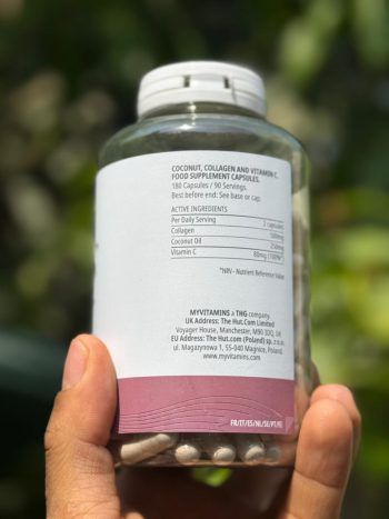 - Myvitamins Coconut & Collagen یک ترکیب ویژه از مواد معدنی است که به طور ماهرانه ای برای حمایت از وضعیت پوست شما طراحی شده است