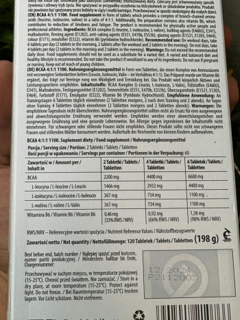 - 6 گرم کامل BCAA در نسبت 2:1:1 طبیعی و ثابت شده تحقیقاتی، بدن شما را برای رشد بهینه عضلات، قدرت، عملکرد و ریکاوری آماده می کند