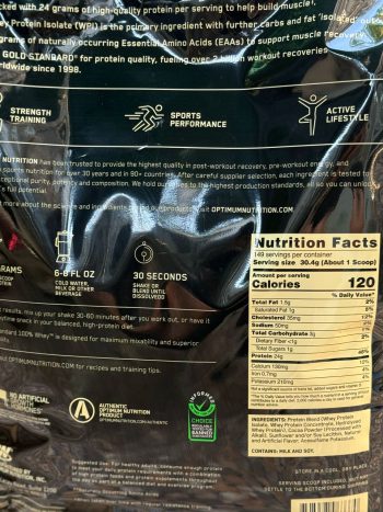 پروتئین وی گلد استاندارد کیسه ای شرکت اپتیموم ناتریشن